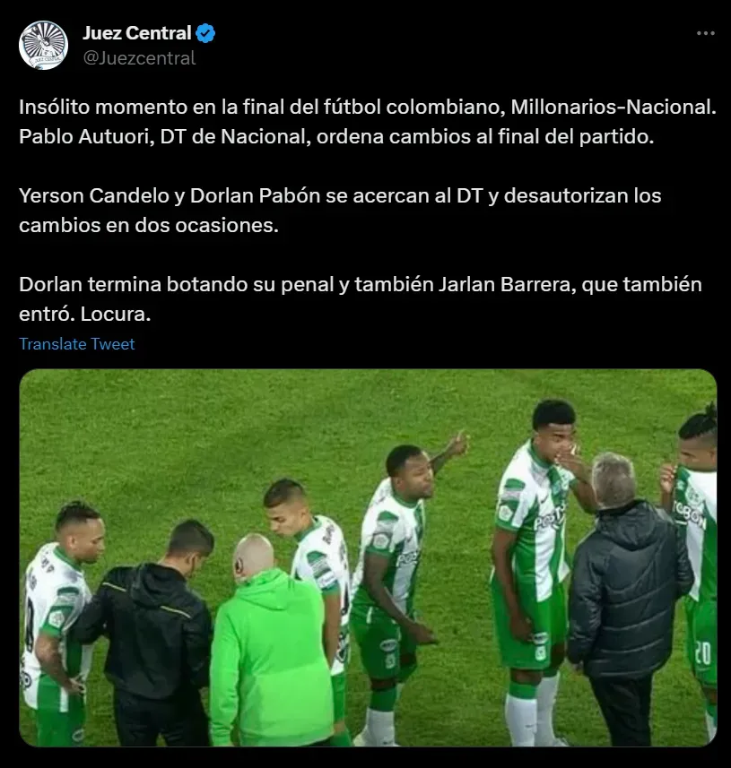 Fue el clásico 265 entreMillonarios y Atlético Nacional. Pero tuvo un sabor ultra especial, pues definió al campeón del fútbol de Colombia. Y todo se resolvió en una tanda de penales a favor del cuadro azul: los Millos se consagraron monarcas luego de una serie de mucha polémica, pues dos jugadores quedaron en el foco. Se rebelaron ante su DT y cambiaron una decisión que terminó con un penal regalado en un momento clave.