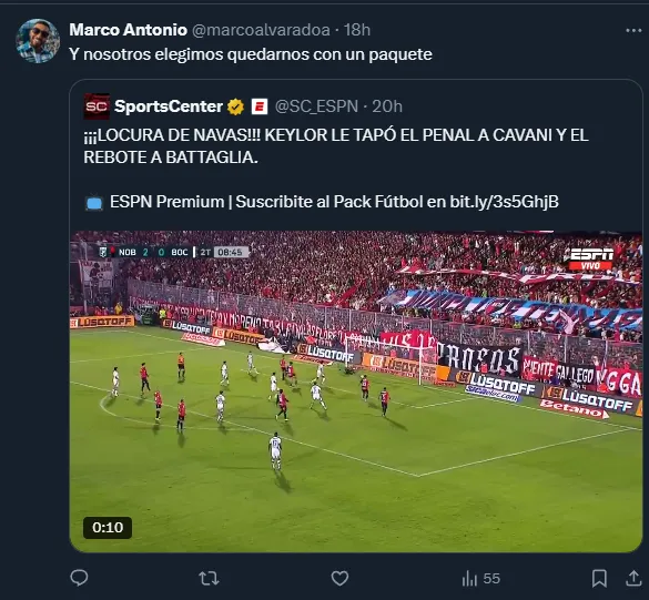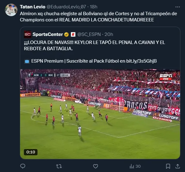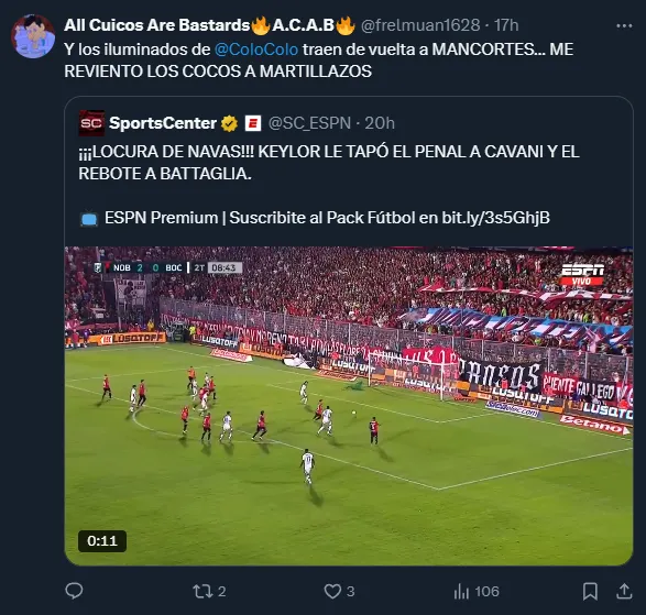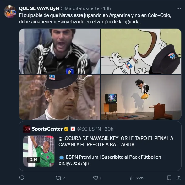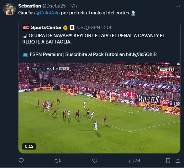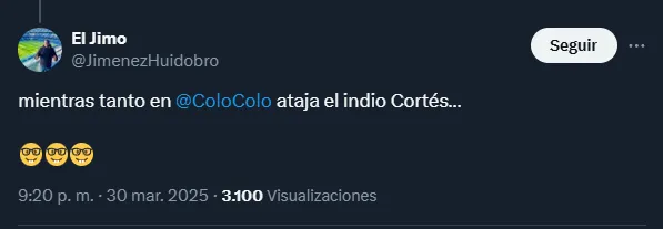 “El arquerazo que nos perdimos”, escribió un usuario, y otro comentaba que “mientras tanto en Colo Colo ataja el indio Cortés”. Otra cuenta escribió: “Y nosotros elegimos quedarnos con un paquete”, mientras que otro usuario se lamentaba diciendo: “gracias Colo Colo por preferir al malo ql de Cortés”.
