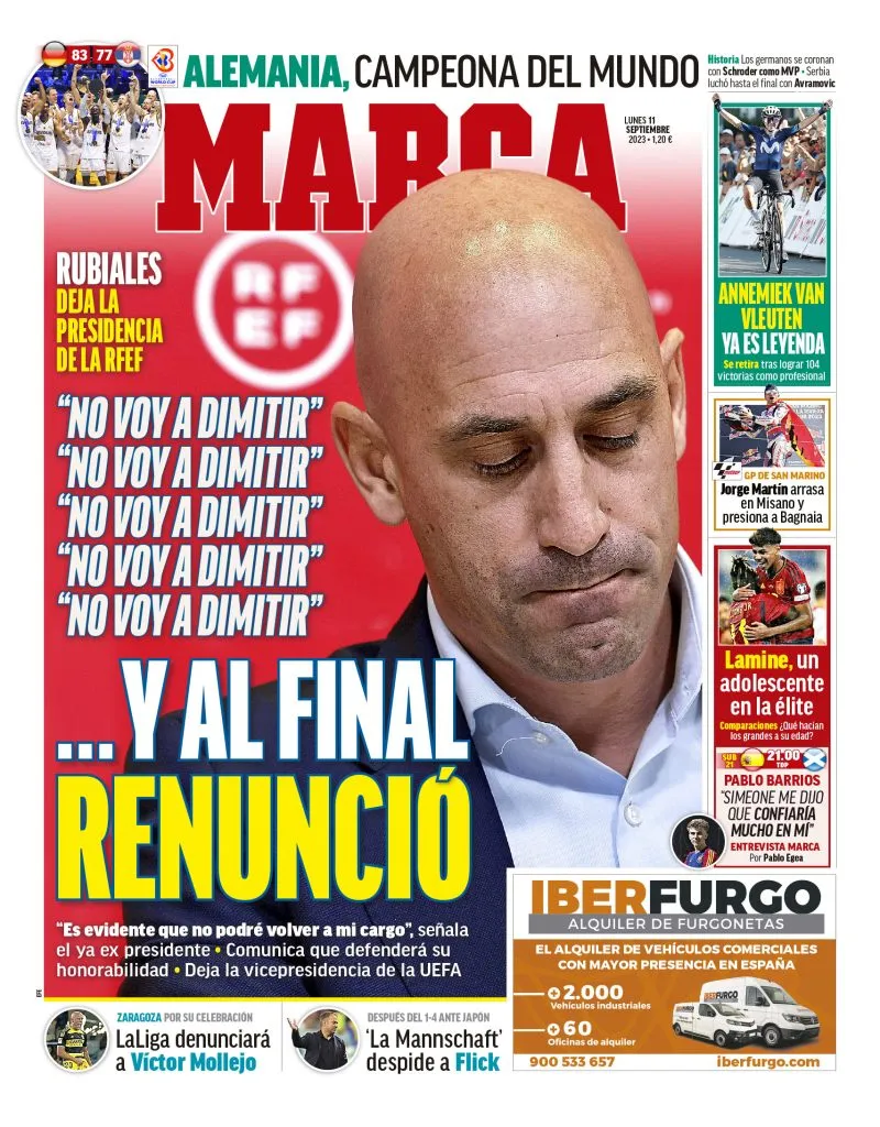 Rubiales, de esta forma, deja el cargo tras cinco años de mandato. La Federación de España ahora iniciará un proceso para elegir a su sucesor, aunque todavía no están claros los plazos ni los candidatos a suceder al protagonista de uno de los grandes escándalos de este 2023.