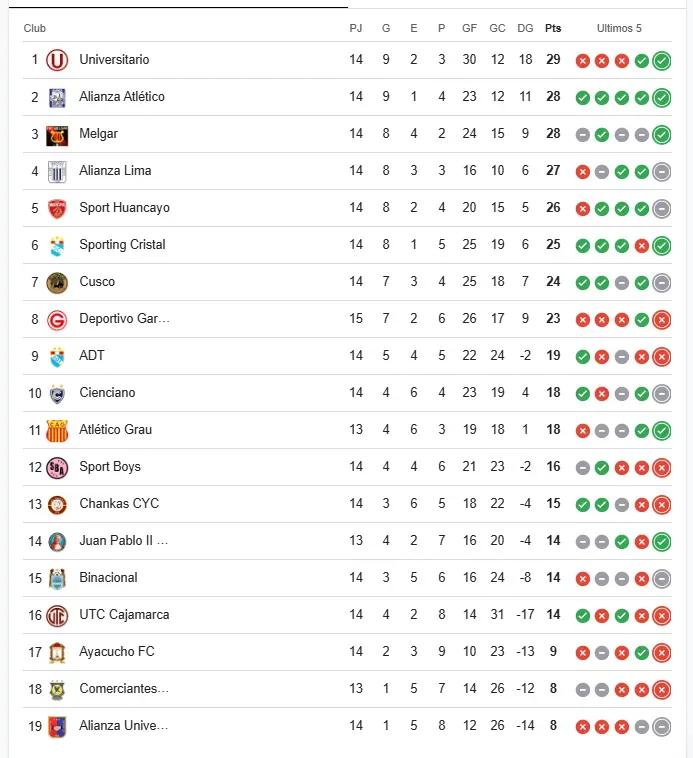 Con este resultado, Universitario se afianza en la cima de la tabla de posiciones del Apertura con 29 puntos, a uno de distancia de Alianza Atlético y Melgar, y a dos de Alianza Lima.