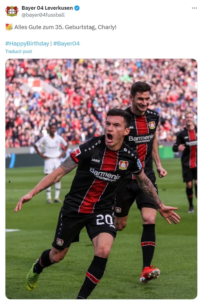 Precisamente fue de este último quien se quiso acordar el Leverkusen, y lo hizo con bastante efusividad. A través de sus redes sociales, publicaron una imagen del Príncipe y escribieron “¡Feliz cumpleaños número 35, Charly!“. La resaca por las celebraciones del título les hicieron perder la cuenta.