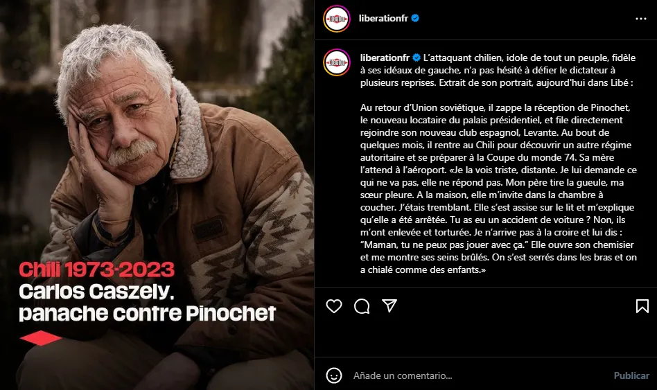 “El delantero chileno, ídolo de todo un pueblo y fiel a sus ideales de izquierda, no dudó en desafiar al dictador en varias ocasiones”, destaca Libération sobre el entonces delantero de Colo Colo y la selección chilena.