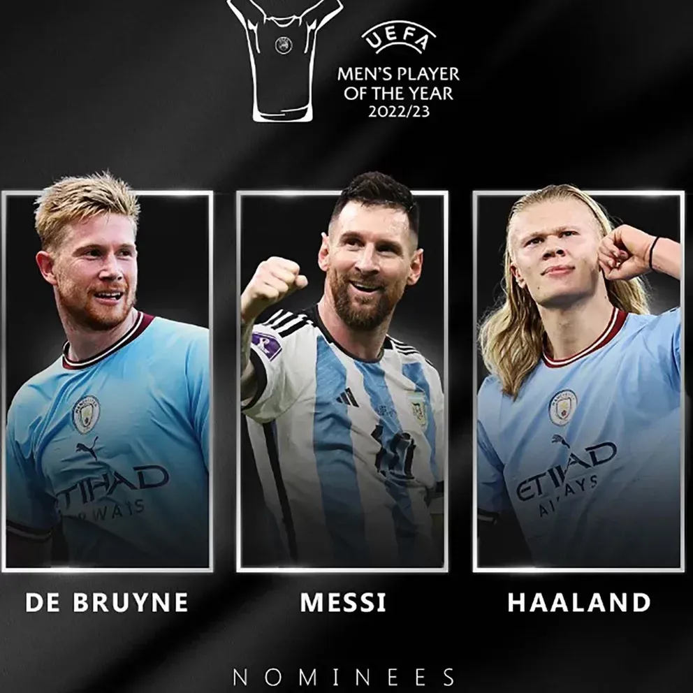 El argentino Lionel Messi, el belga Kevin de Bruyne y el noruego Erling Haaland, son los tres nombres que disputarán la pelea por el premio a mejor jugador europeo de la temporada 2022/23.