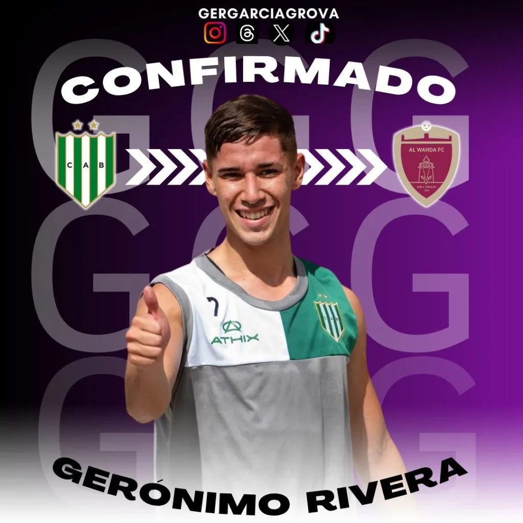 Hablamos del delantero Gerónimo Rivera, de 21 años, quien luego de ser una de las figuras de Banfield en las últimas campañas, tomará sus maletas y partirá nada menos que a Emiratos Árabes, donde se convertirá en nuevo refuerzo de Al-Wahda.
