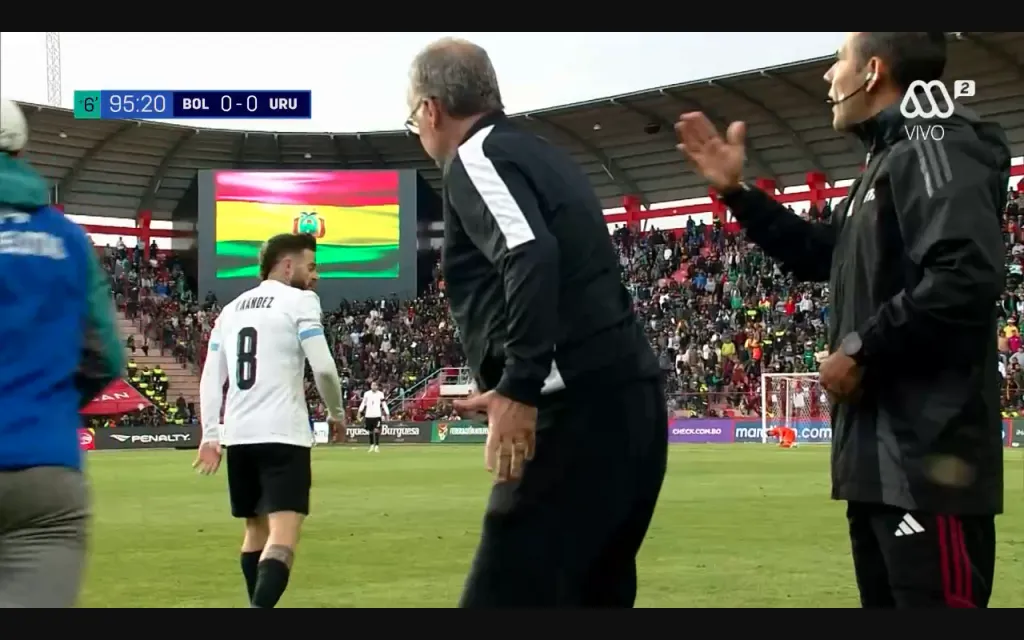 El DT de Uruguay retó al jugador que milita en la liga saudí y lo llamó a retirarse al centro de la cancha, en vez de acelerar el juego. Y claro, en El Alto hay que jugar lentamente. Gracias, don Marcelo.