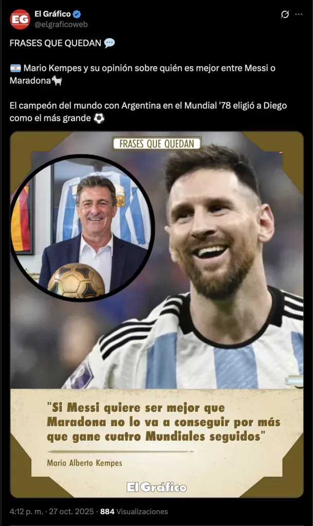 Cuando se pensaba en Argentina que el debate por el mejor jugador en toda su historia entre Lionel Messi y Diego Maradona finalizó con la obtención del Mundial de Qatar 2022, nuevamente se reabre la grieta en ese país gracias a un campeón mundial.
