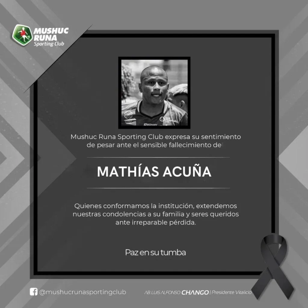 Mushuc Runa extiende su pesar por la muerte de Mathias Acuña: