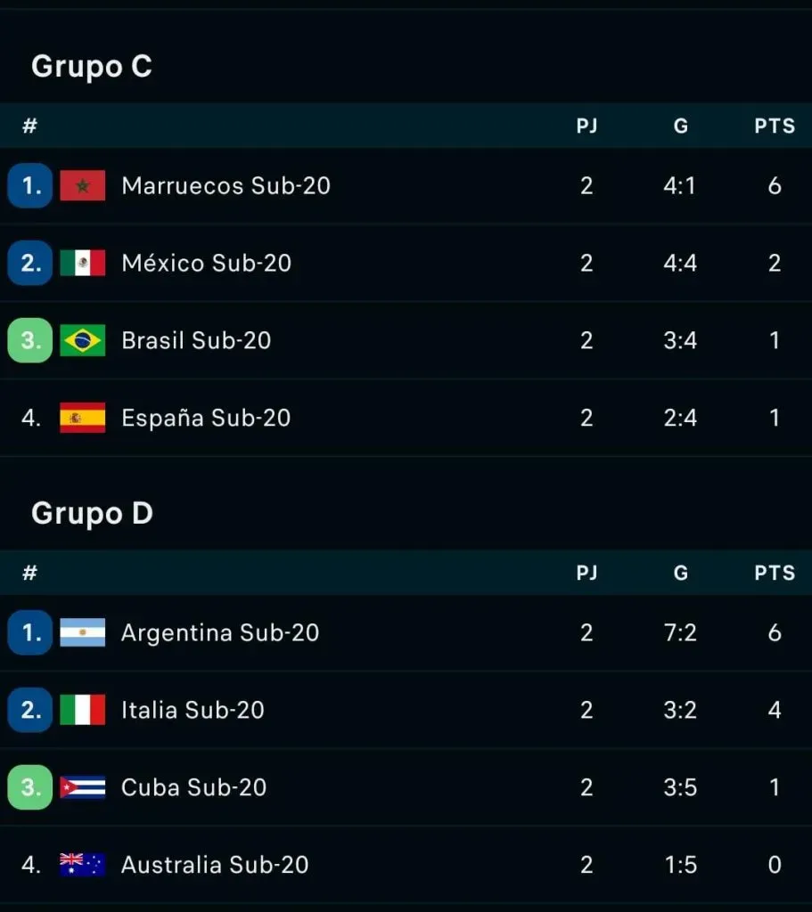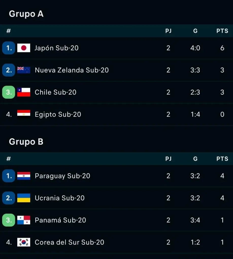 Y con especial atención mira las tablas la selección chilena Sub 20, porque dependiendo si clasifica segundo o como mejor tercero en el Grupo A, le podrían tocar duros rivales en la siguiente fase.