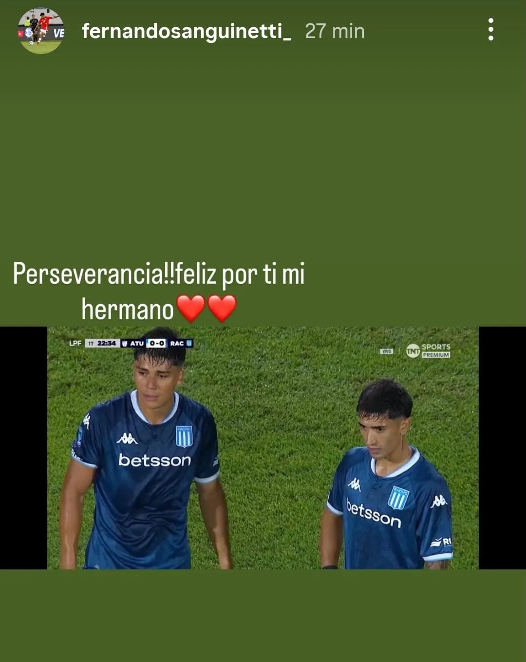 “Feliz por ti, mi hermano”, sentenció Sanguinetti en su mensaje, que acompañó con una foto que sacó antes de que Pizarro dejara ese pase-gol. Eso sí, el ariete de la Academia fue reemplazado en los 57 minutos, cuando le dejó su lugar a Conechny. Pero su rendimiento fue aprobado y seguramente celebrado a la distancia.
