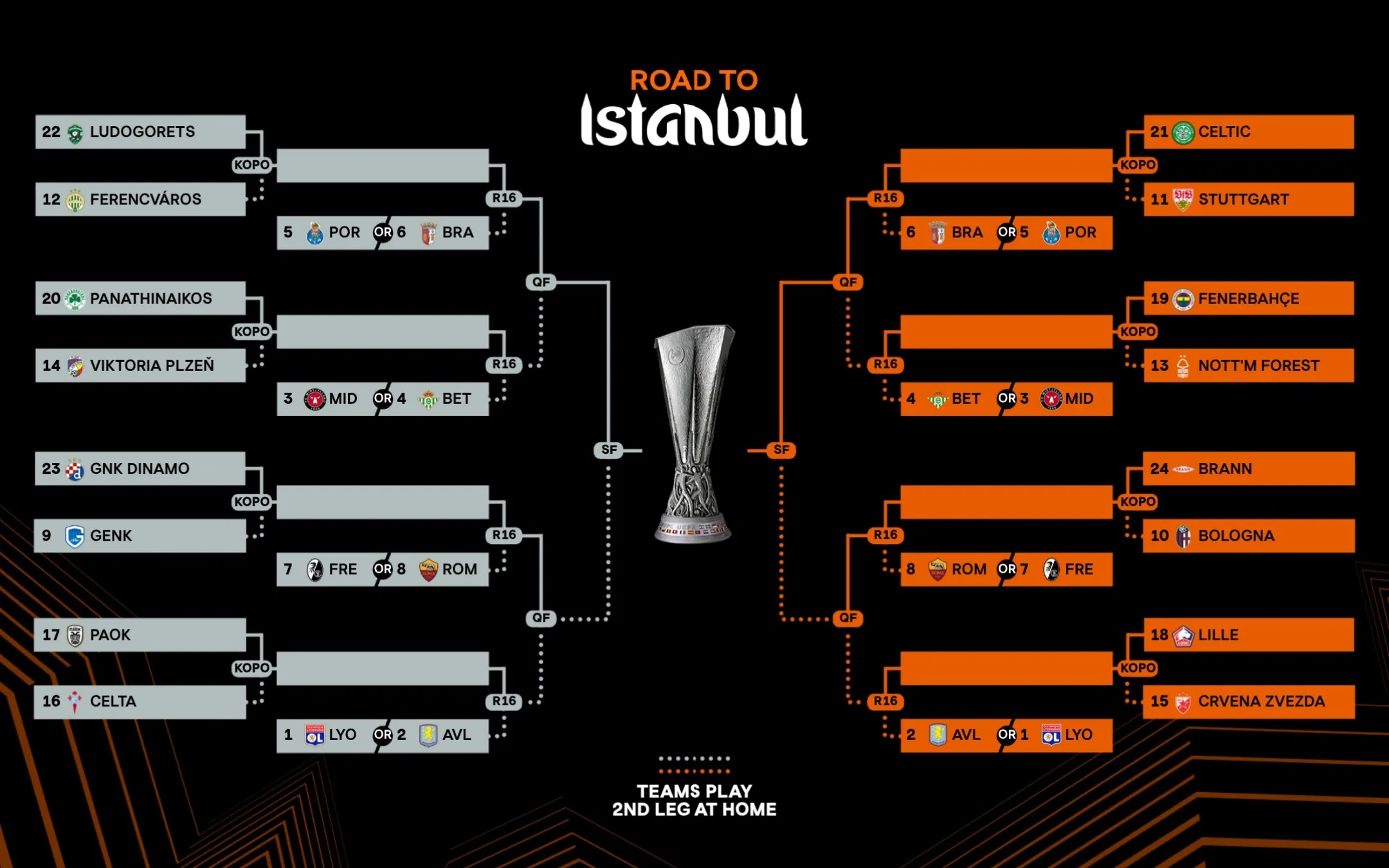 - Panathinaikos (GRE) – Viktoria Plzen (CZE)