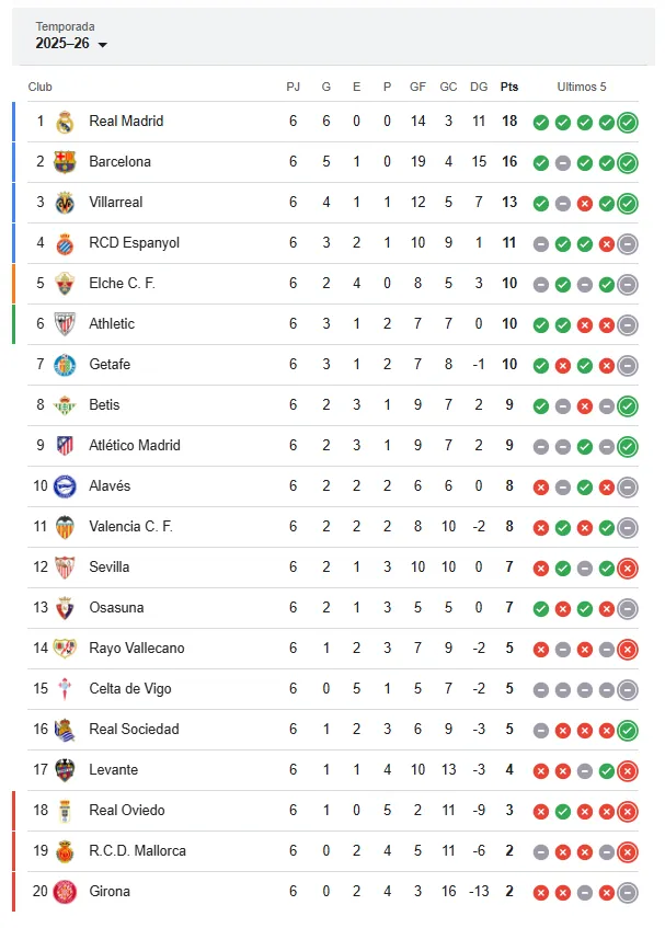 Tabla de posiciones de la Liga de España