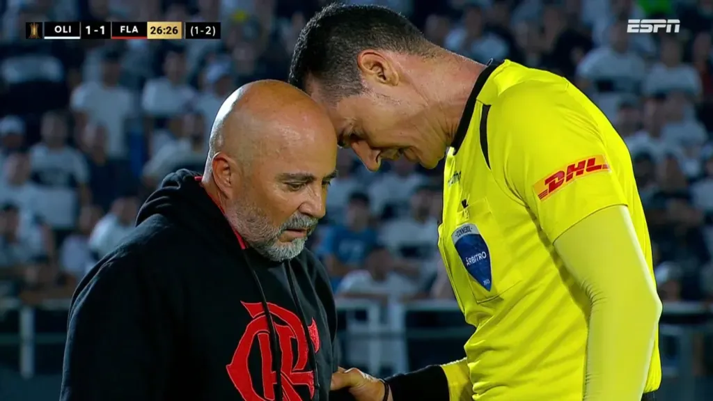 Jorge Sampaoli jamás se ha mostrado como un entrenador que mantenga la calma ante cobros que le parezcan adversos. Y así lo dejó claro ante una decisión del colombiano Wilmar Roldán que no le gustó para nada. El DT de Flamengo terminó con un durísimo reproche para el equipo de árbitros que le costó ser expulsado.