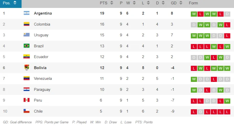 Argentina es el líder exclusivo de las Eliminatorias 2026, mientras que Bolivia ocupa el sexto lugar de la tabla. Por el momento, ambos países irían al Mundial de manera directa.