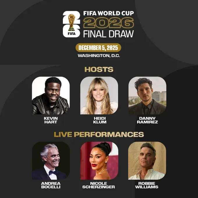 La FIFA anuncia a los conductores y artista invitados al sorteo del Mundial 2026.