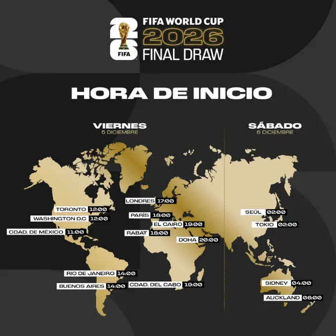 ¿A qué hora comienza el sorteo de grupos del Mundial 2026?