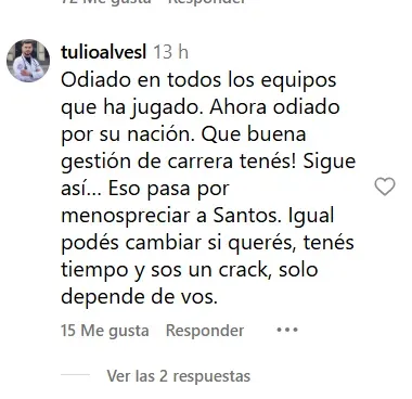 A eso se sumaron algunos lujos particulares, sobre todo frente a Gary Medel, cuando defendía los colores del Santos en la Serie A brasileña. Y qué decir del odio que genera entre los argentinos, por un fuerte cruce que tuvo con Lionel Messi y sus posteriores declaraciones cizañeras.