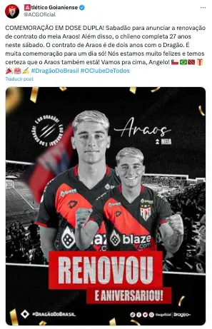 El cuadro brasileño se mostró más que feliz de poder seguir contanto con el chileno en sus filas. “El contrato de Araos es por dos años con Dragão. ¡Eso es mucha celebración para un día! ¡Estamos muy contentos y estamos seguros que él también!”, cerraron.