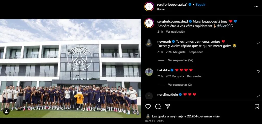 “Gracias a todos. Espero estar rápidamente a vuestro lado”, publicó Rico en Instagram junto a una fotografía en la que aparece el plantel, cuerpo técnico, dirigentes y funcionarios del equipo parisino junto a su caseta.