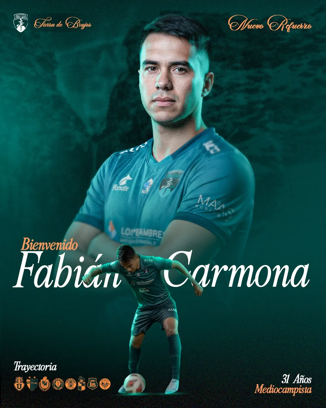 “¡Un refuerzo de categoría y trayectoria llega a Brujas! Fabián Carmona será otro de los protagonistas del cuadro salamanquino durante el torneo 2026″, informó el club en sus redes sociales.