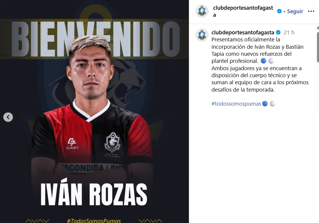 A través de sus redes sociales, Antofagasta reveló que Iván Rozas se suma al equipo como refuerzo y que ya se encuentra a disposición del cuerpo técnica, sumándose al equipo de “cara a los próximos desafíos de la temporada”.