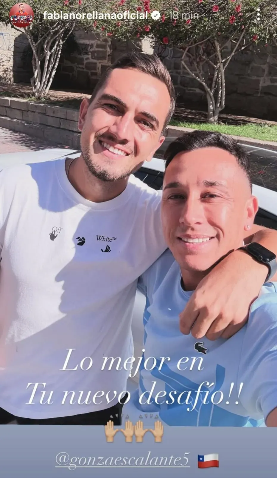 Allí jugaron juntos en 59 partidos. Tiempo de sobra para conocerse bien. De hecho, Escalante le dejó un regaloneo cibernético al ex jugador del Celta de Vigo y el Granada de España. Reposteó el mensaje del chileno con un agasajo típico que recibe Orellana.