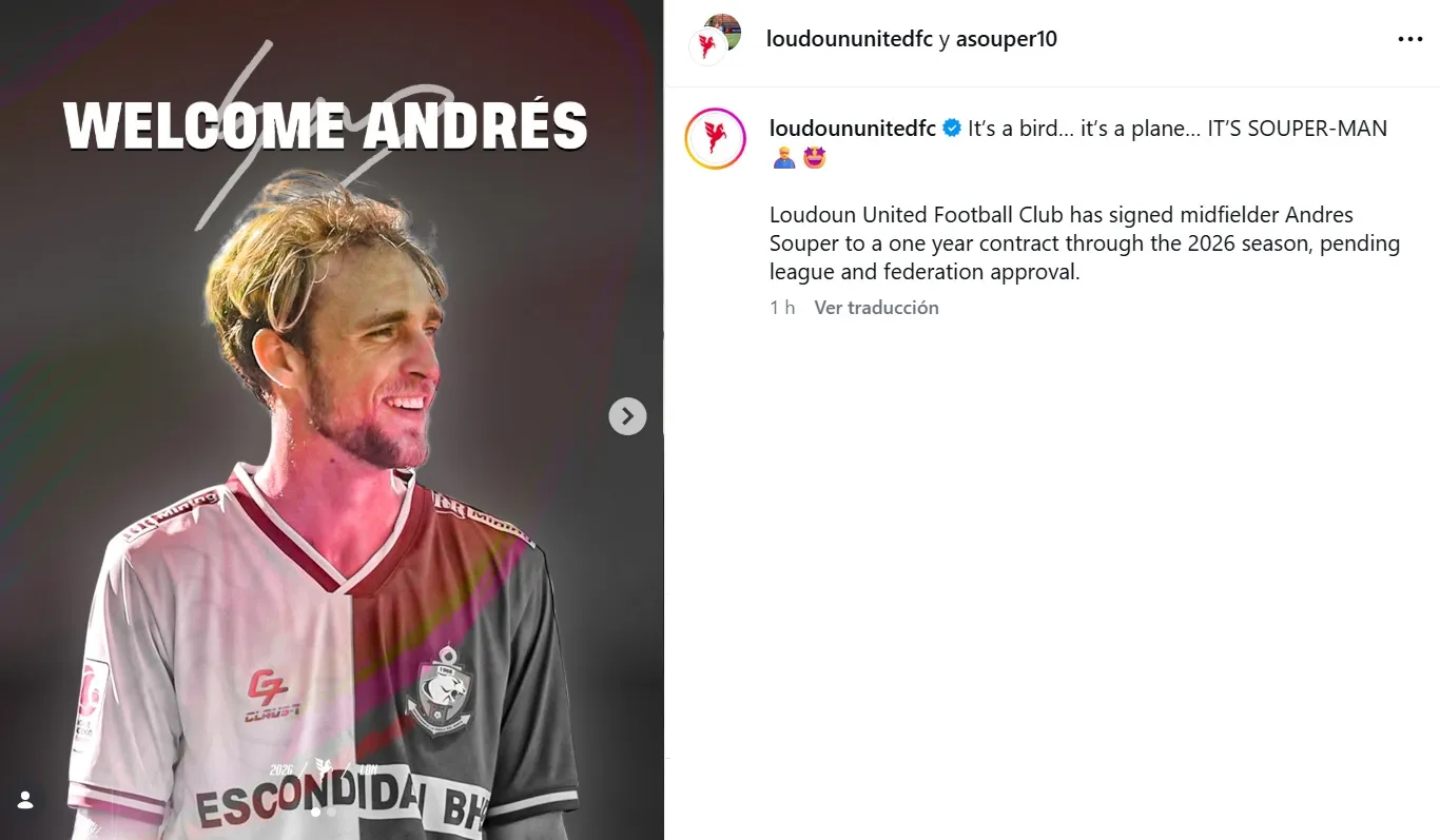A través de sus redes sociales, el equipo Loundoun United, que disputa la USL Championship, anunció el fichaje del jugador. “Es un pájaro… es un avión… ES SOUPER-MAN”, revelando que el jugador llega “con un contrato de un año hasta la temporada 2026, pendiente de la aprobación de la liga y la federación”.