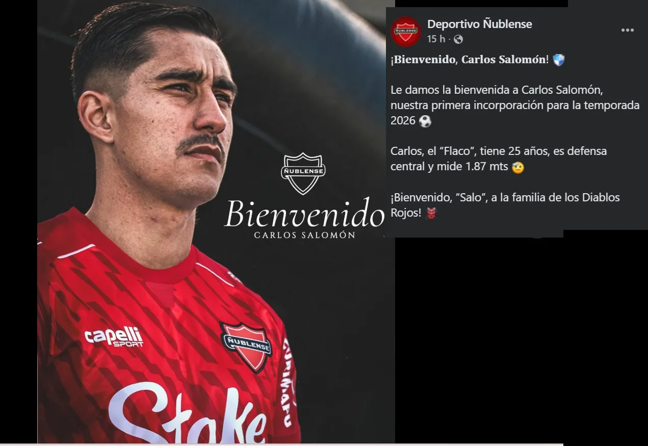 A través de sus redes sociales, el equipo oficializó la llegada del jugador. “Le damos la bienvenida a Carlos Salomón, nuestra primera incorporación para la temporada 2026. Carlos, el “Flaco”, tiene 25 años, es defensa central y mide 1.87 mts. ¡Bienvenido, “Salo”, a la familia de los Diablos Rojos”.