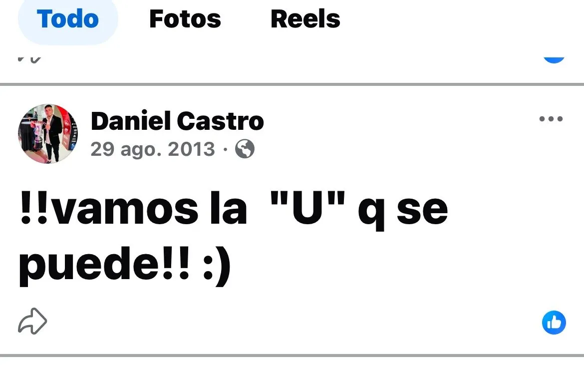 Popín Castro y una imagen que lo muestra como hincha de la U