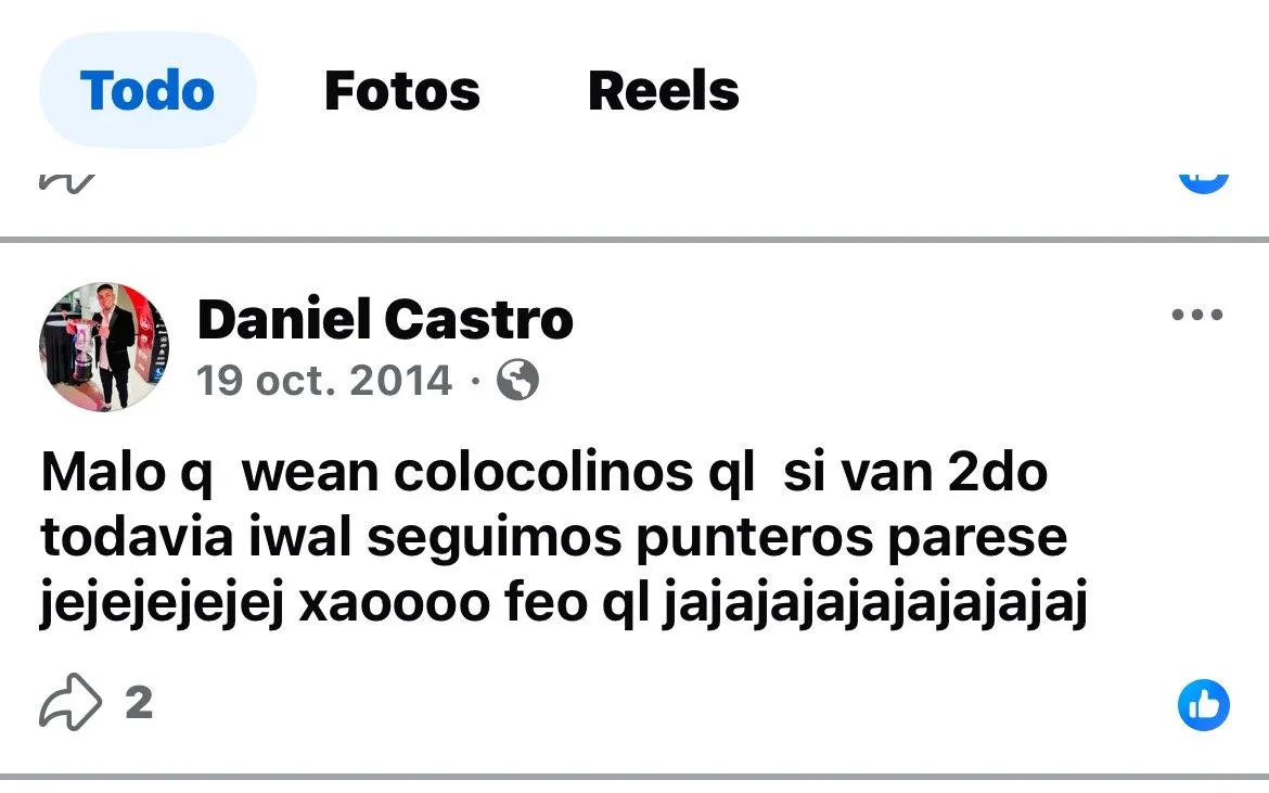 Como buen profesional, es una alternativa que atrae a Daniel Castro. Eso a pesar de ser hincha de la Universidad de Chile, como se puede ver en antiguos posteos de sus redes sociales.
