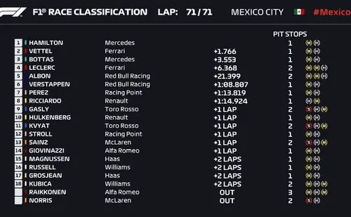 En un duelo en que primó la estrategia de Mercedes sobre los errores de Ferrari, Lewis Hamilton ganó el Gran Premio de México y quedó ad portas de convertirse en hexacampeón mundial de Formula 1.