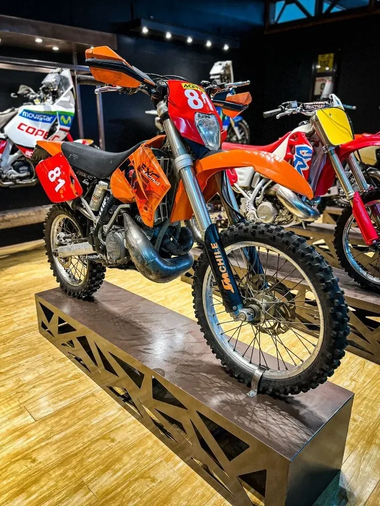 En la muestra también destaca la 125cc que fue la tercera moto con la cual salió campeón nacional de motocross a los 16 años. Y así, suma y sigue con la cual salió bicampeón en motocross y enduro en 1996.