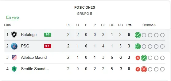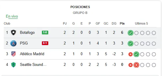 Luego de la victoria por la cuenta mínima de PSG ante Botafogo, por la segunda fecha del Mundial de Clubes, así queda la tabla de posiciones del Grupo B una vez consumado el resultado.