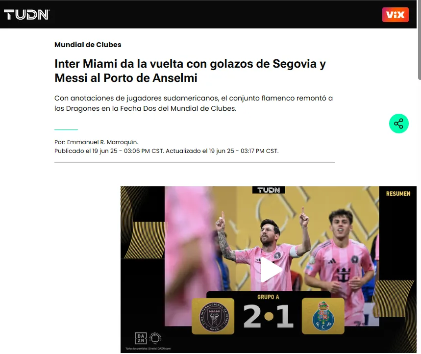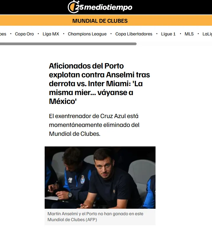 TUDN también lo destruyó: “Inter Miami da la vuelta con golazos de Segovia y Messi al Porto de Anselmi”, escribieron. Mientras que Mediotiempo reflejó la rabia de los hinchas lusos: “Aficionados del Porto explotan contra Anselmi tras derrota vs. Inter Miami: ‘La misma mier… váyanse a México’”, comentaron.