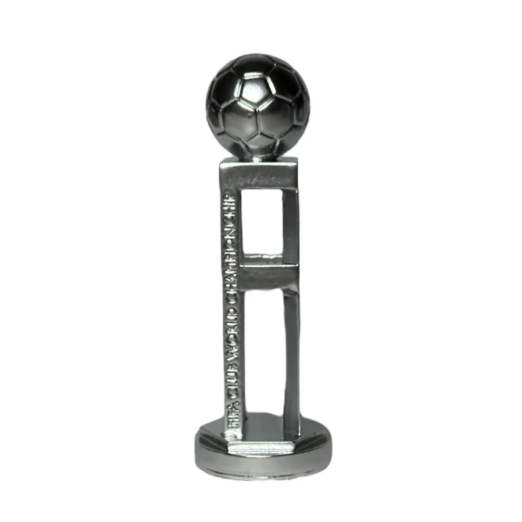El trofeo del Mundial de Clubes 2025 está fabricado con oro vermeil, una alternativa al oro puro que está compuesta en su mayoría por Plata 925. Tiene diferentes elementos grabados en láser como partes de la historia y la cultura del fútbol.