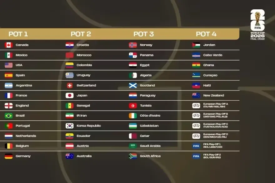 Eso sí, hay tres selecciones que ya tienen designados sus grupos: se trata de Estados Unidos, México y Canadá, los organizadores. Las tres bolillas de estas naciones están establecidas para que jueguen de local (México al Grupo A, Canadá al Grupo B y Estados Unidos al Grupo D).