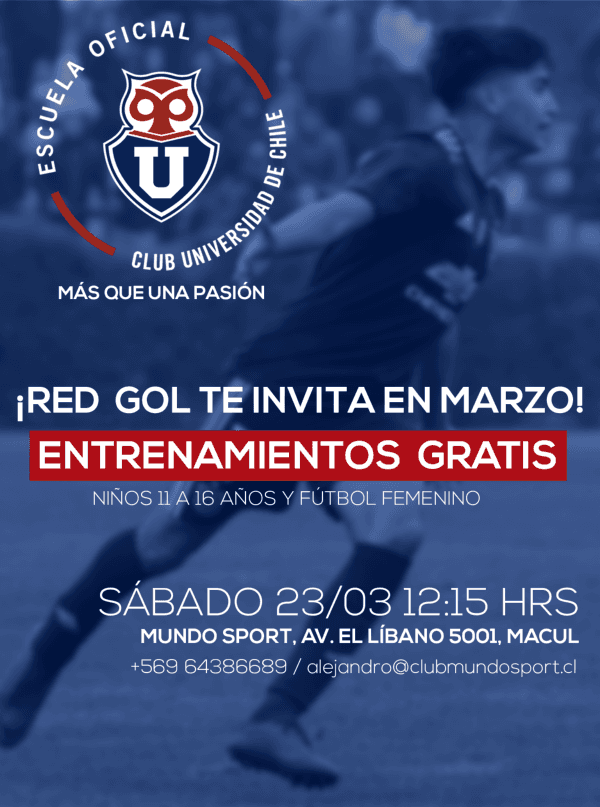 Esto, porque la Escuela de Fútbol Oficial de la Universidad de Chile de Macul, “Más que una Pasión”, te invita a ser parte de sus actividades durante el 2019. Las clases comienzan este sábado 23 de marzo a las 12:15 hrsen la sede ubicada en Mundo Sport, calle El Líbano 5001.