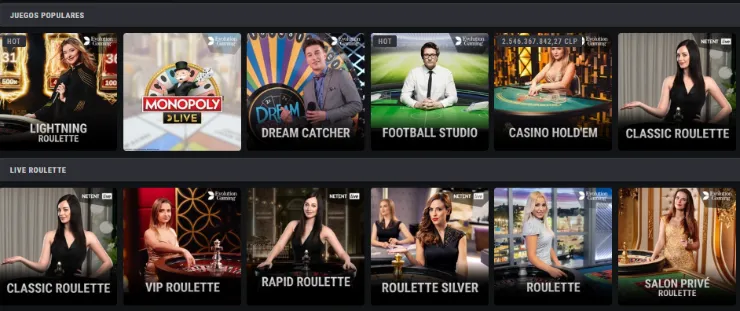 Desde ruletas, pasando por Black Jack, incluso con Monopoly, y unas entretenidas partidas de poker con otros competidores son parte de una extensa oferta. También puedes aprovechar las entretenidas tragamonedas de diversas temáticas para divertirte de principio a fin.