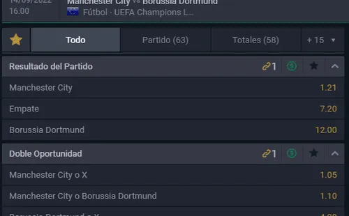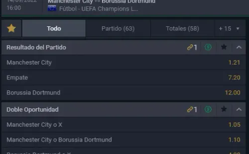 Para el comprimiso entre Manchester City vs Borussia Dortmund, el favorito para ganar en Betsala, la Sala de los Campeones, es Manchester City, que paga 1,21 veces lo que juegues, por sobre los 12,00 que paga Borussia Dortmund, si crees que los alemanes serán los vencedores. Ahora, si termina en empate, paga 7,20 veces lo que juegues.