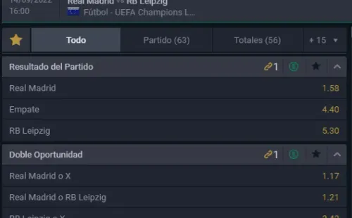 Mientras que en el partido de Real Madrid ante RB Leipzig, el favorito para vencer es Real Madrid, que paga 1,58 veces lo que apuestes, por sobre los 5,30 que paga RB Leipzig, si crees que los alemanes vencerán en España. Ahora, el empate entre ambos paga 4,40 veces lo que juegues de la mano de Betsala.