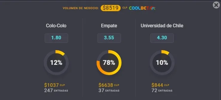 El OSO de Coolbet tiene las cuotas preparadas para este compromiso amistoso en Argentina, y te cuenta que el equipo que corre con la ventaja es Colo Colo, que paga 1,80 veces lo que juegues, por sobre los 4,30 que paga Universidad de Chile, si piensas que los azules se quedan con el compromiso. Ahora, si crees que termina en empate, paga 3,55 veces lo que apuestes.