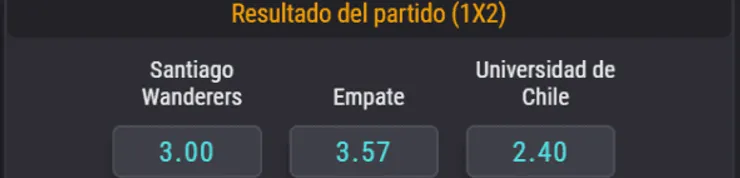 Para el OSO de Coolbet, el favorito para el duelo programado para este sábado 15 de febrero a las 12:00 hrs en el Bicentenario Elías Figueroa es la Universidad de Chile. Su triunfo paga en Coolbet 2.40 veces lo que juegues. Si crees que será Santiago Wanderers el vencedor, paga 3.00 veces lo que apuestes. Ahora, si piensas que habrá empate, paga 3.57 veces.