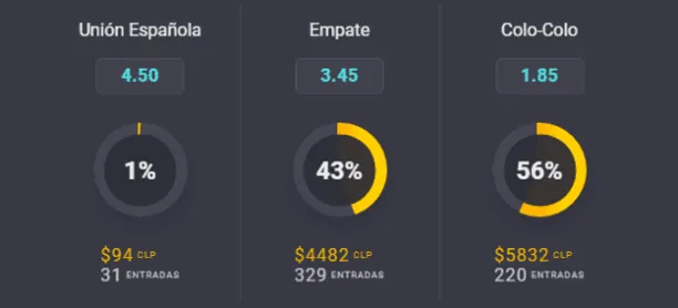 Para el OSO de Coolbet, el favorito para ganar en esta llave de semifinales de la Copa Chile 2021 es Colo Colo, que paga 1,85 veces lo que juegues por sobre los 4,50 que paga Unión Española, si crees que los rojos de Santa Laura ganan el partido. El empate en los 90 minutos paga 3,45 veces lo que juegues.