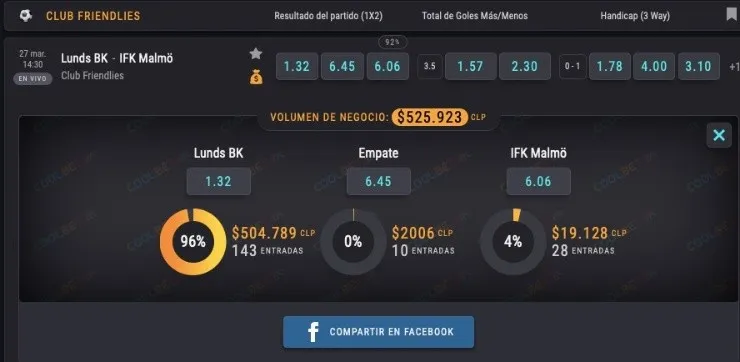 Pone mucha atención, porque desde ahora en Coolbet puedes revisar cuánto dinero entrega en cada uno de los partidos. ¿Cómo es eso? Puedes ver cuánto se está apostando en un partido en tiempo real. Solo debes hacer click en la opción que aparece en las cuotas, y así lo revisas.