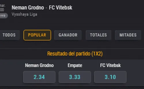 Para este partido, el OSO de Coolbet te cuenta que el favorito para ganar es el Neman, que paga 2.34 veces lo que apuestes, contrario a los 3.10 que paga el Vitebsk. El empate, en tanto, paga 3.33 veces lo que juegues.