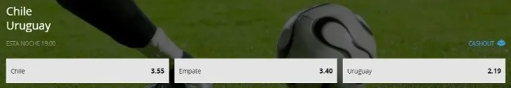 Según los expertos de Betsson, los dirigidos por Reinaldo Rueda, a diferencia de lo ocurrido en los dos encuentros anteriores, no llegan como favoritos para el encuentro de este lunes 24 de junio ante Uruguay, es así como un triunfo de los charrúas paga 2,19 veces lo apostado. Mientras que si te la juegas por un triunfo de Chile, la cuota sube a 3,55. Finalmente, un empate tiene un factor de 3,40.