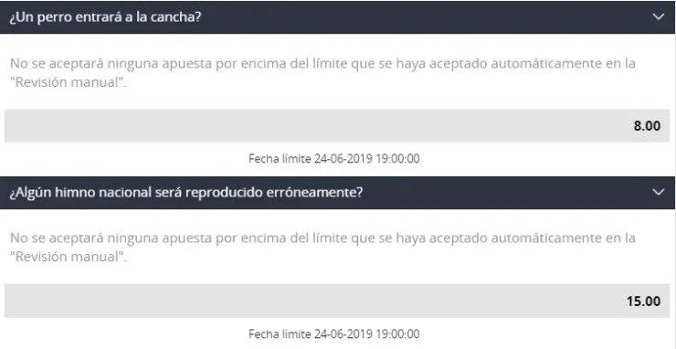 Además revisa las apuestas especiales que Betsson ofrece, donde puedes apostar cuántas veces se utilizará el VAR en la final, si Messi anotará de tiro libre en el torneo, si Chile ganará algún partido por tanda de penales, o incluso puedes apostar a si Luis Suárez morderá a un rival este lunes, hecho que tiene una cuota de 76.00.