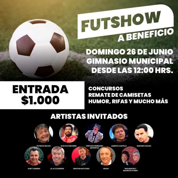 Con entrada a $1.000, en el Gimnasio Municipal de San Francisco de Mostazal, se podrá disfrutar del show, el fútbol, participar de rifas, concursos, remate de camisetas y humor.