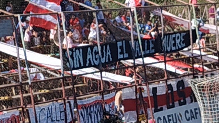 El partido entre Unión San Felipe y San Luis de Quillotafue el marco ideal para que las barras de ambos conjuntos hicieran pública la sensación de angustia y preocupación que existe en las Provincias de San Felipe y Quillota, por el mal uso y aprovechamiento del agua por parte de la gran Minería y Agricultura.