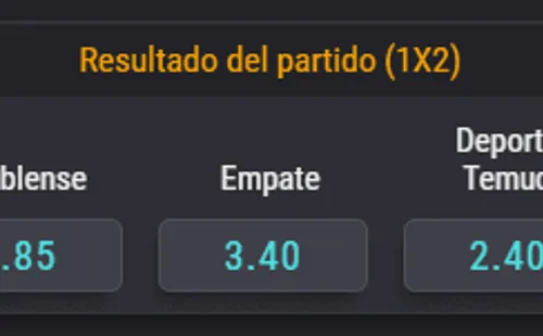 Si te la quieres jugar en este partido, el favorito para el OSO de Coolbet es Deportes Temuco, cuyo triunfo paga 2.40 veces lo que juegues. Si crees que el vencedor será Ñublense de Chillán, y por ende el finalista de la Liguilla, este resultado paga 2.85. Ahora, si piensas que el resultado será una igualdad, el resultado marcha con una cuota de 3.40.