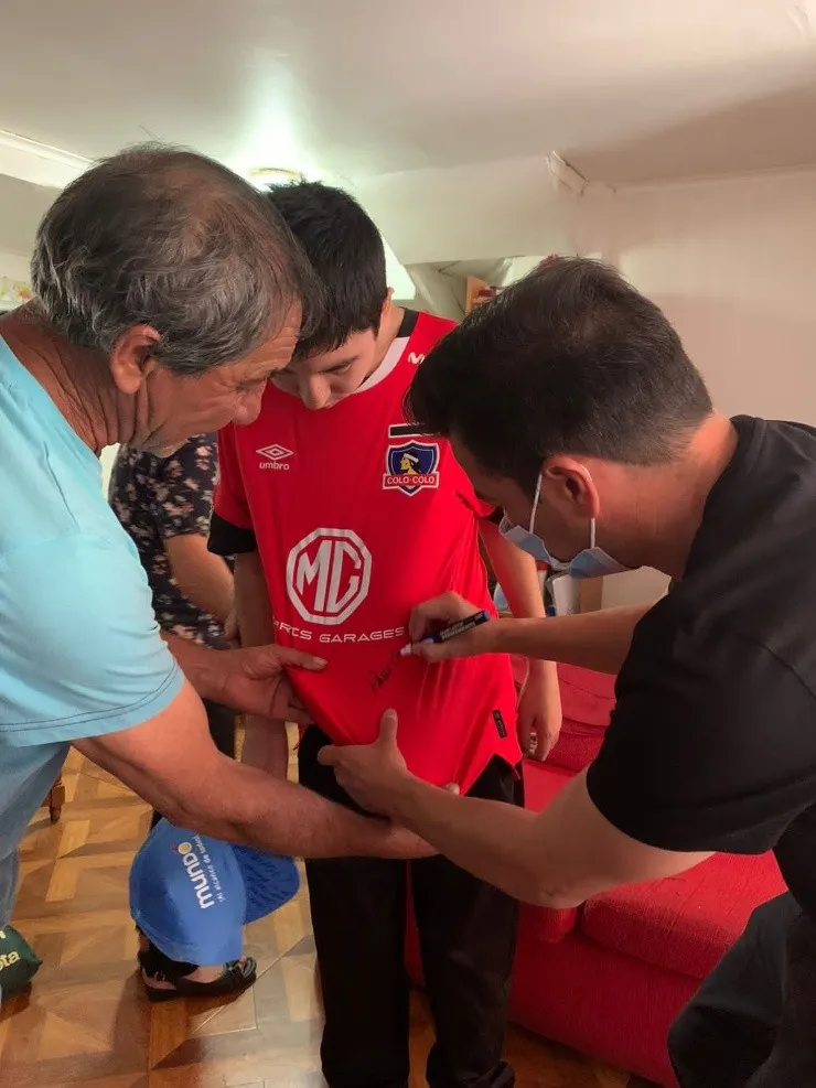 Y es que además de conversar de sus experiencias y anécdotas en el terreno de juego, Chamagol visitó en su domicilio a Carlitos, quien quedó contento y su familia muy emocionada de recibir a un medallista olímpico.
